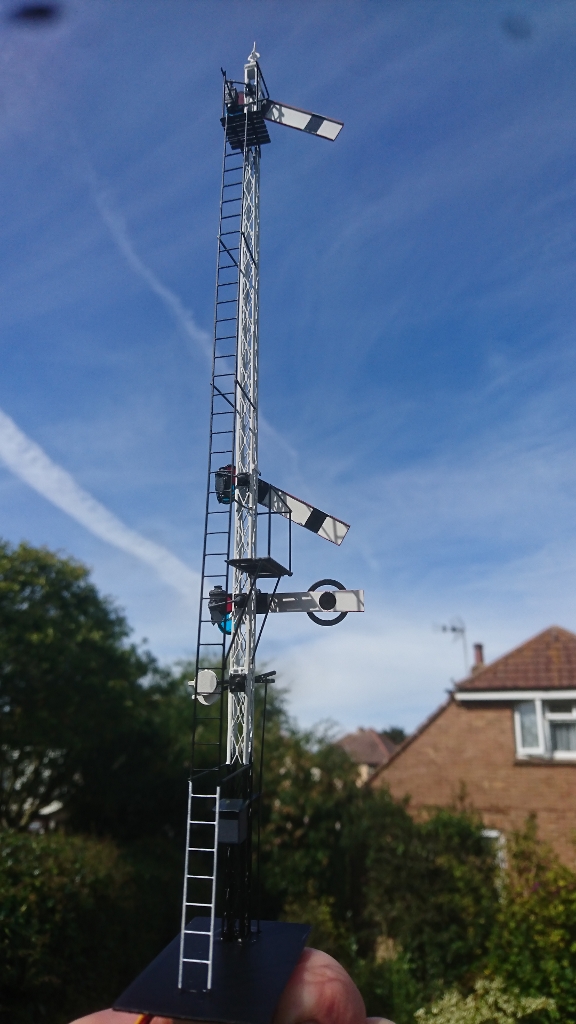 BR(WR) 4 doll centre pivoted tubular construction bracket signal. All from Boltons Bits etches.